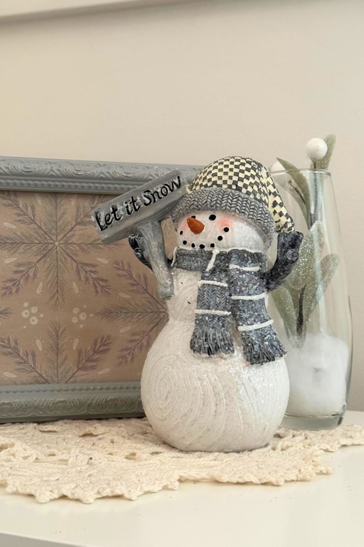 Sometimes a little snowman holding up a sign is enough to bring a winter hello into your home.