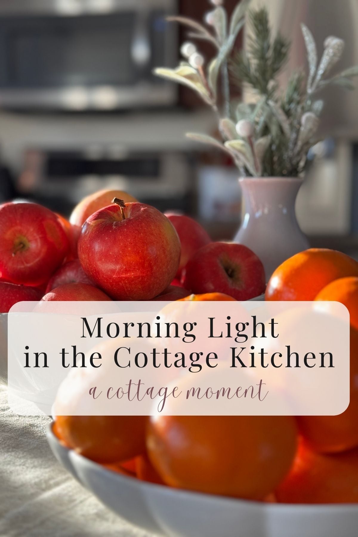 As I walked toward the sink to do the breakfast dishes, I noticed the sunlight joyfully touching the fruit on the kitchen island. I paused for a moment to enjoy this small display of morning light reflecting from the gold-trimmed bowls and dancing across the apples and oranges.