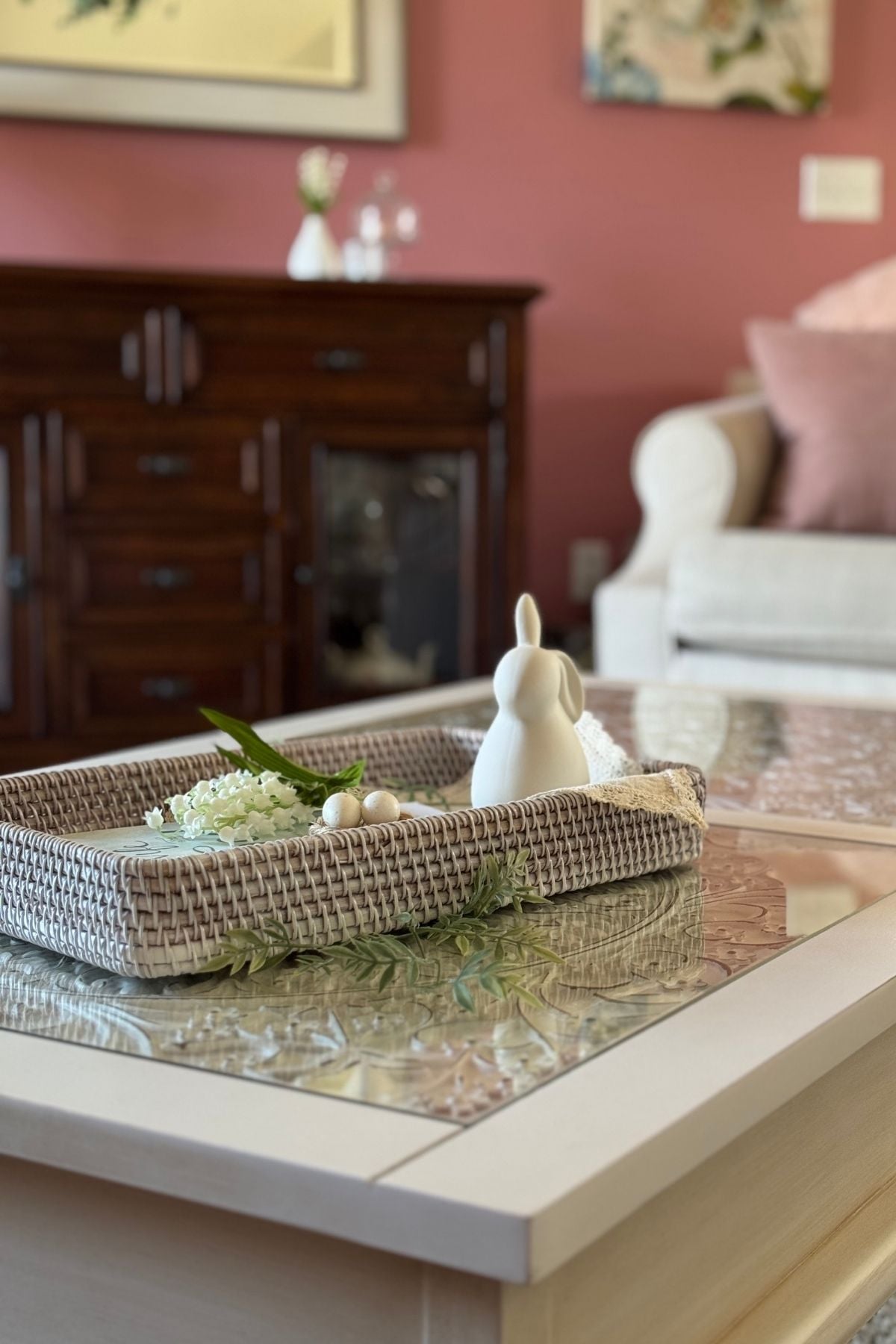 A coffee table is a perfect spot for creating a spring vignette.